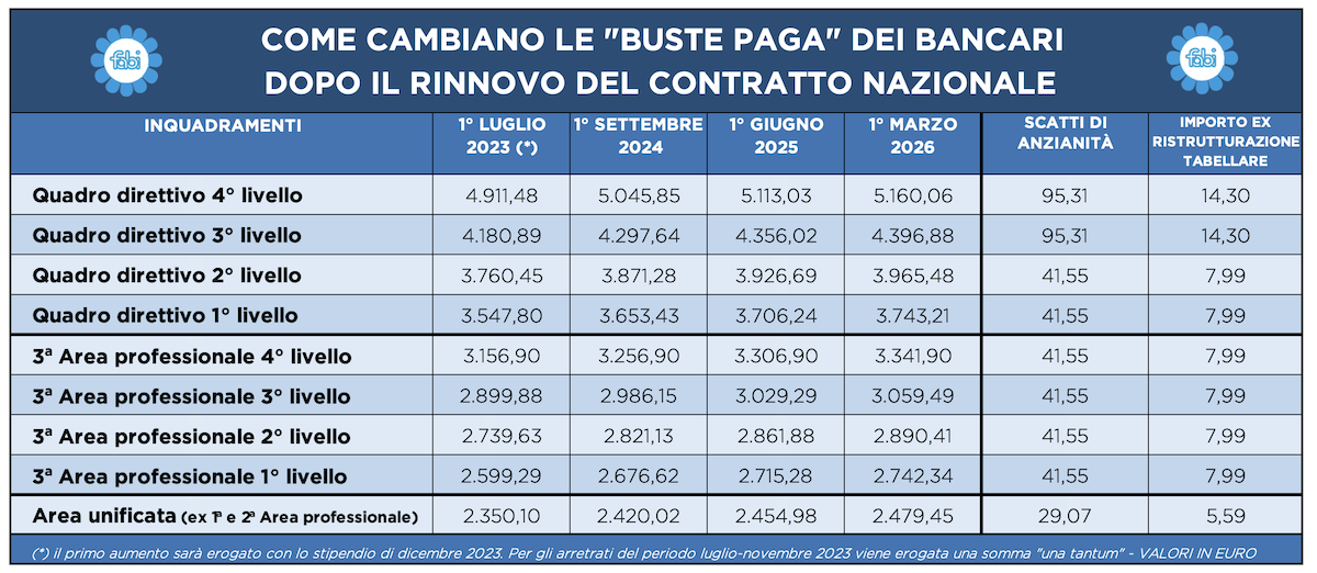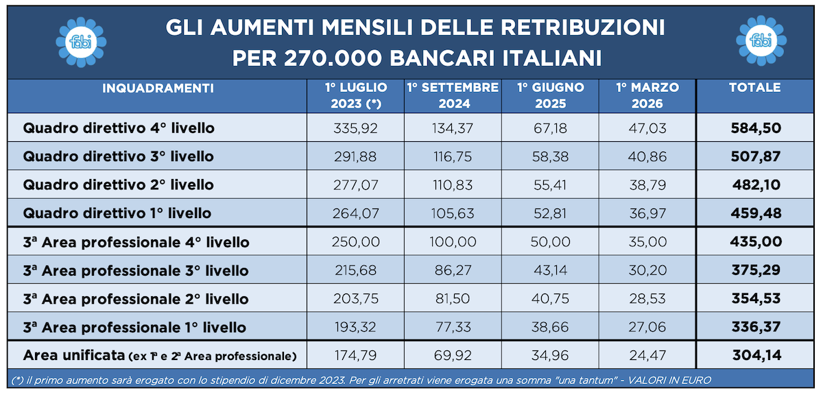 Tabella aumenti